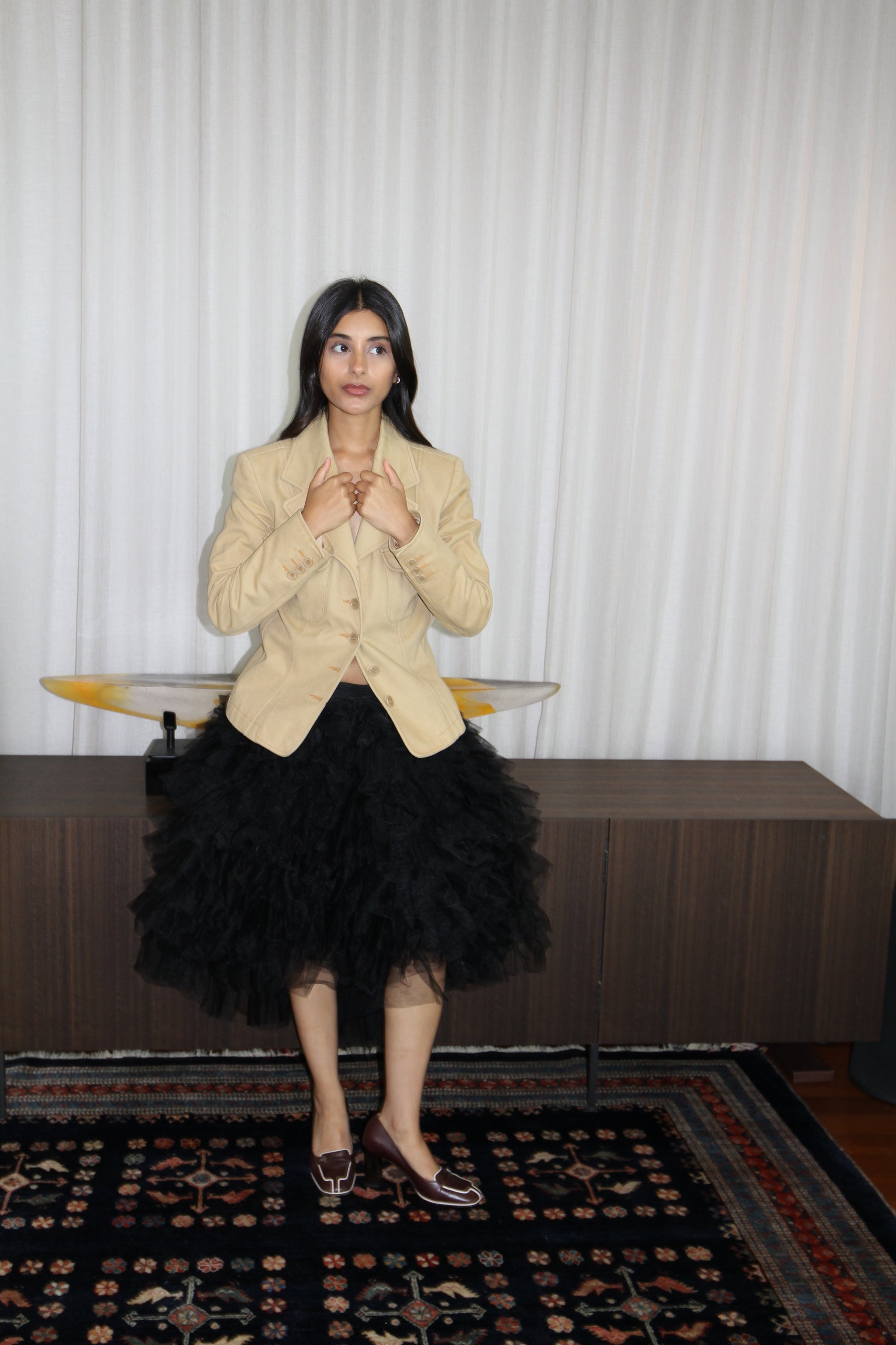 Handmade Skirt by Hanae, a local Sydney based designer. Designed for maximum volume, this piece creates a dramatic yet elegant look with layers of lightweight tulle that flow effortlessly. With a comfortable elastic waistband, it’s easy to style and perfect for layering over your favorite tops. Whether for a night out or a special occasion, this skirt will give you that perfect balance of femininity and drama.